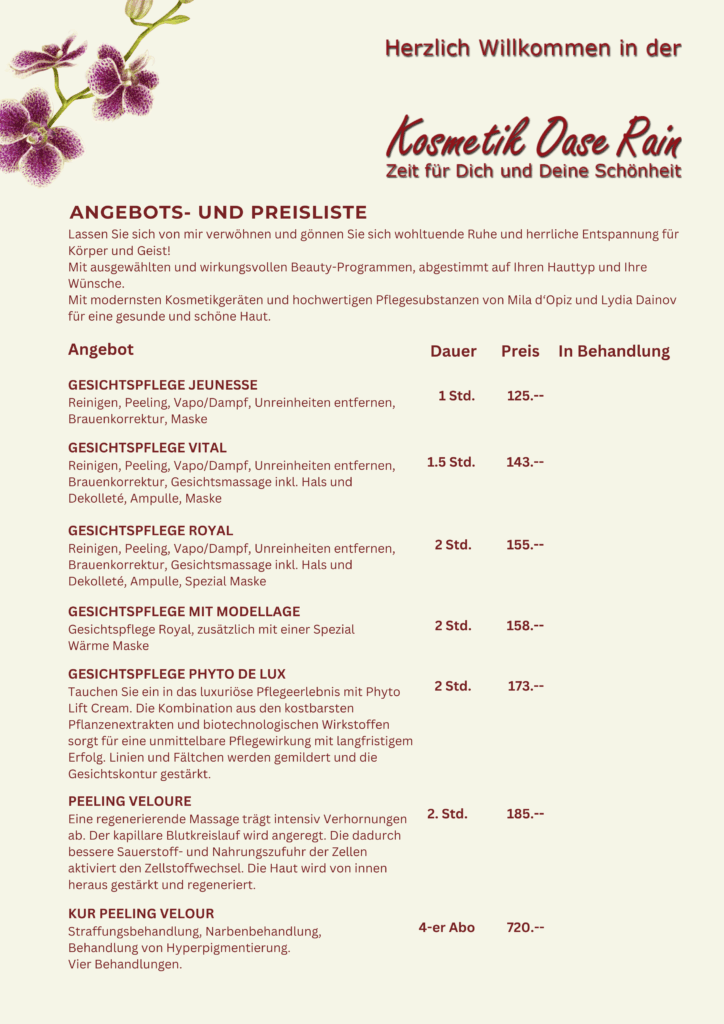 Lassen Sie sich von mir verwöhnen. Mit ausgewählten und wirkungsvollen Beauty-Programmen, abgestimmt auf Ihren individuellen Hauttyp und Ihre persönlichen Wünsche.