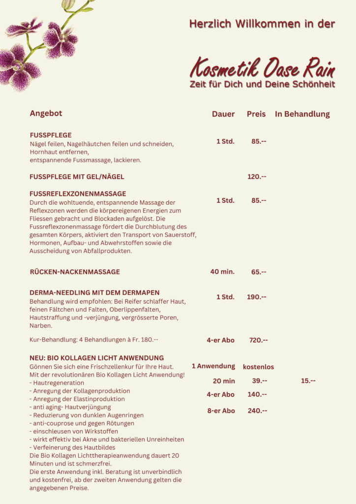 Hier können Sie eine detaillierte Liste mit dem Angebot und den Preisen herunterladen: Angebots- und Preisliste